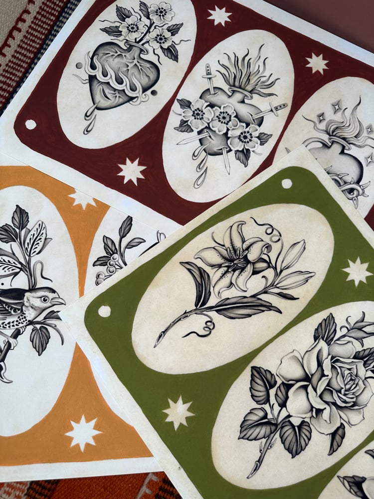 Original artwork set painted on Arches hot pressed watercolor paper 300gsm, 100% cotton with Winsor&Newton black ink , acrylic and was varnished with Titan Yate marine varnish. Printed on heavyweight watercolor fine art paper, preserving the texture and richness of the originals.